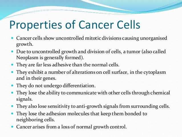 What Is Cancer National Cancer Institute from www.cancer.gov Cancer cells lack differentiation cancer cells are nonspecialized and do no view the full answer These cancer cells have special proteins inside, called hormone receptors. Cancer cells, therefore, are normal cells whose genes (several genes) have been damaged. Um, cancer cells undergo a pop toes is no, they do not undergoing potatoes. However, recent advances suggest that apoptosis, under certain circumstances, can be immunogenic. Cancer cells, however, have the ability to grow without these external signals. Cancer cells characteristics, vs normal cells, types and microscopy overview: One of the most widely cited papers in oncology is 'hallmarks of cancer' which initially listed 6 hallmarks and then updated in 2011 with two more.